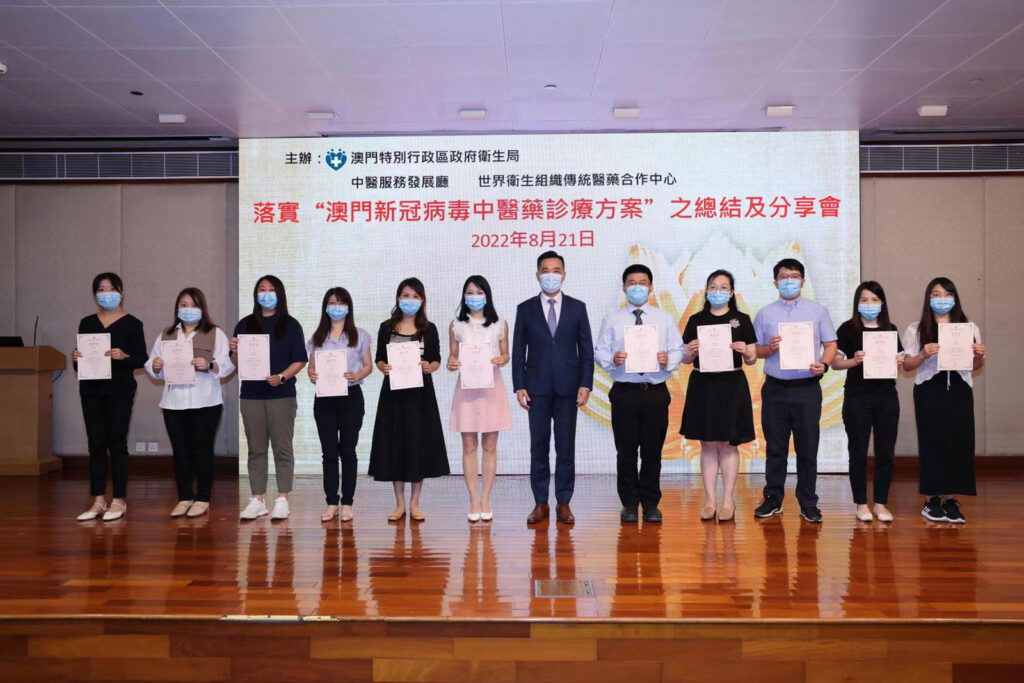 【本報訊】衛生局中醫服務發展廳和世界衛生組織傳統醫藥合作中心(澳門)日前舉行“落實《澳門新冠病毒中醫藥診療方案》之總結及分享會”,衛生局羅奕龍局長、鄭成業副局長、社區醫療衛生廳郭秋莎廳長、中醫服務發展廳代廳長兼世界衛生組織傳統醫藥合作中心(澳門)莫蕙代主任、衛生中心感染控制小組組長梁寶鸞護士監督及副組長余斌護士長,以及近百名的中醫抗疫小組成員出席了活動。