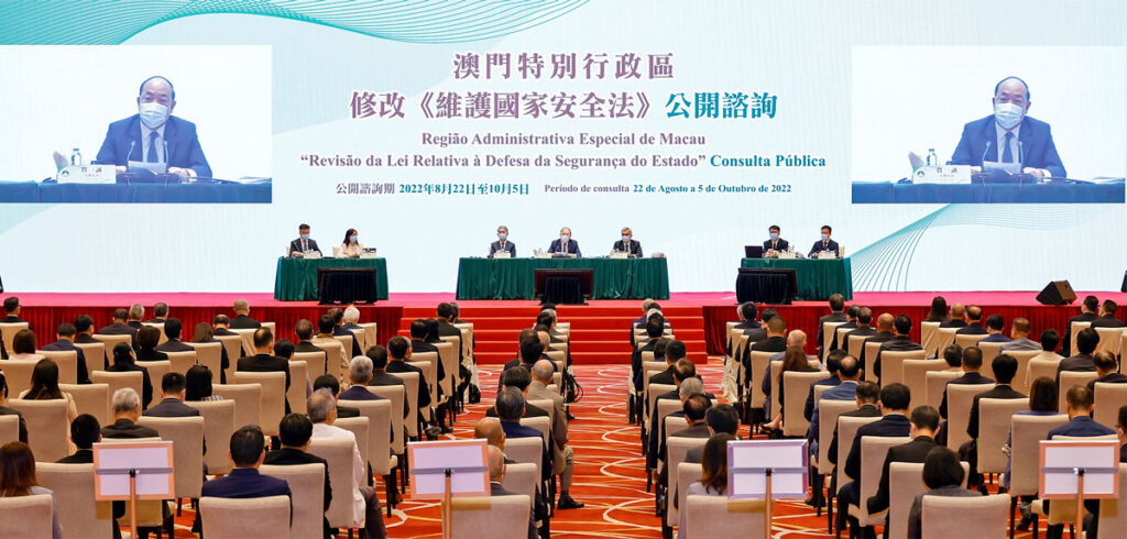 賀一誠致詞時表示,眾所周知,現行「國安法」體現澳門特區履行基本法第二十三條有關維護國家安全的憲制責任,對國家的安全和澳門社會長治久安起了極大的促進作用,但因應國內外安全形勢的深刻變化,尤其是世界正處於百年未有之大變局,大國博弈不斷加劇,以及近期美國眾議院議長竄訪台灣地區等侵害中國國家主權、安全和領土完整的實在事例,使我國正受到來自不同領域、非常嚴峻的安全威脅,促使澳門特區要以更有力的安全治理予以防範應對。