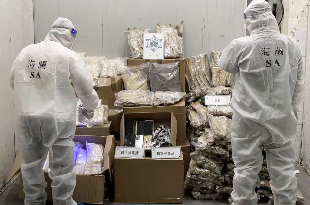 海關情報及風險管理處代處長葉立本表示,因應中秋國慶假期將至,局方近日對北區一帶工業大廈及商舖加強巡查,根據情報懷疑祐漢新村第六街興隆樓地面層三號舖A3室涉嫌從事水客散貨活動,經連日監察後於今日下午對上述散貨點採取行動,進入舖位進行搜查,結果成功搜獲約二百包、每包約重五百克的燕窩,一百五十包、每包約重二點五公斤的魚翅、六十多部舊手提電話及二十多件舊電子產品。