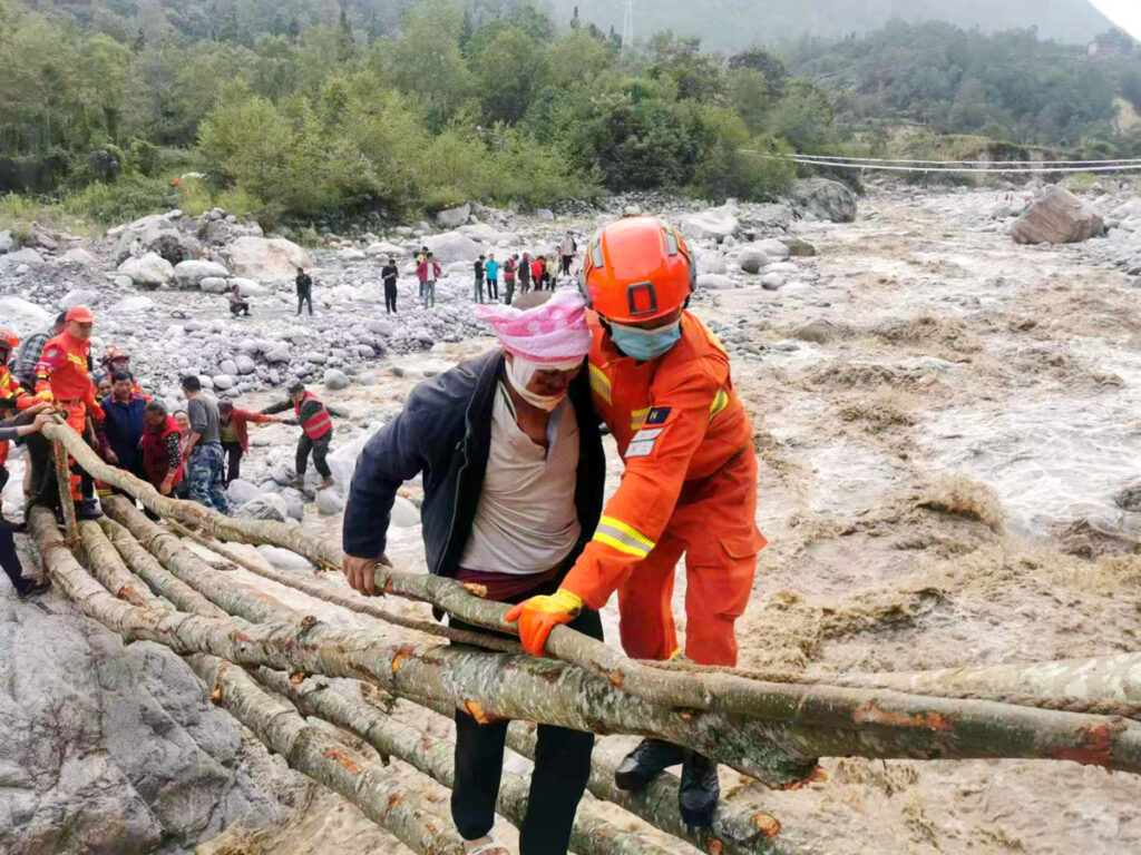 地震造成大渡河一級支流灣東河出現斷流,形成堰塞湖,目前已有較大自然洩流,風險總體可控,受威脅民眾已疏散轉移。