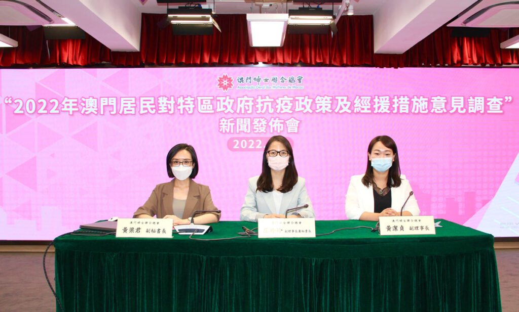 【本報訊】澳門婦女聯合總會7日發佈「2022年澳門居民對特區政府抗疫政策及經援措施意見調查」調研報告,婦聯副理事長兼秘書長莊玲玲、副理事長黃潔貞、副秘書長黃梁君表示,調查上月開展,共收回3,098份有效問卷。