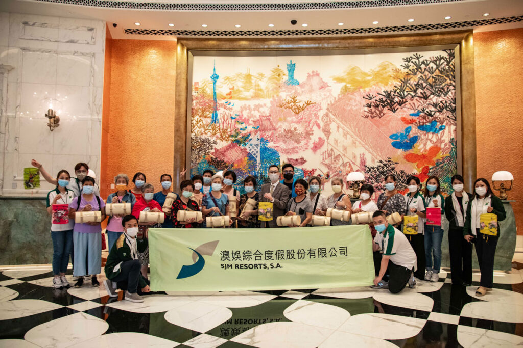 參加活動的長者們沿途參觀上葡京豐富的休閒度假設施,包括:位於東、西翼大堂的多件由本地藝術家匠心打造的藝術珍品;澳門上葡京的特色客房及套房,從中感受現代中國風的精巧別致;以及華美壯闊的歐式庭園綠茵勝境花園。綠茵勝境花園內更佈置了由本地資深藝術家和青年藝術家共同創作的巨型花燈,象徵傳統藝術邂逅現代創意的藝術裝置引人入勝,長者們紛紛合照留念。活動結束後,每位長者均獲贈澳娛綜合精心準備的中秋月餅,盡情享受溫馨的佳節前夕,感受歡樂氣氛。