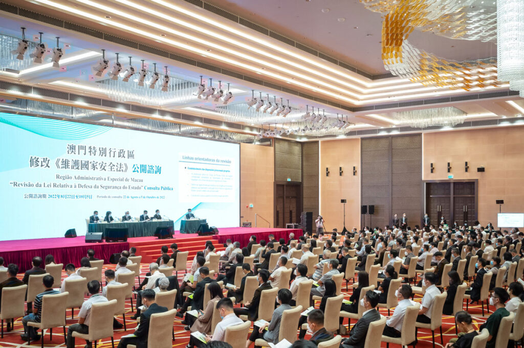 修改《維護國家安全法》公開諮詢會運輸工務界別專場,昨日下午三時在中葡平台綜合體舉行,逾二百人出席。保安司司長黃少澤致詞表示,維護國安不僅是特區的憲制責任,也是包括澳門居民在內全中國人民的法定責任,因此,維護國安法的完善十分需要社會各界以及全體居民的關心,積極參與推動。基於此,特區政府決定就修改國安法由今年八月二十二日起展開為期四十五天的公開諮詢,希望廣泛聽取意見及建議,凝聚最大社會共識,訂出修法方案,爭取早日啟動修法程序。