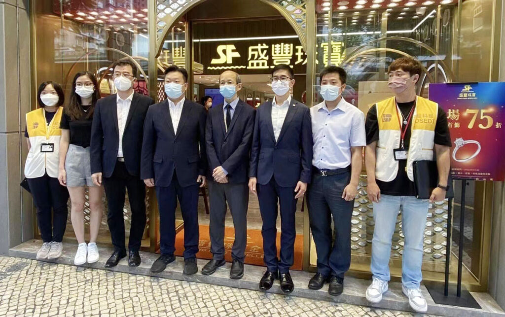 抽檢活動今早由南灣區商號出發,經南灣殷皇子馬路、新馬路等商號抽取金飾檢驗,同行有經科局委派代表全程隨行監督指導。