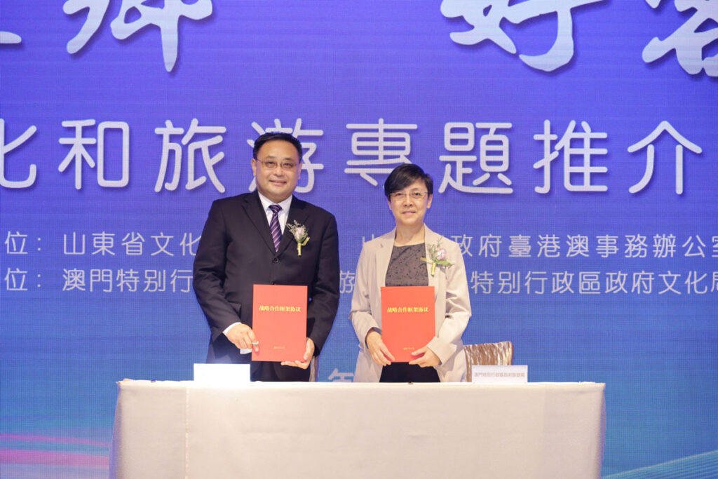 山東省文化和旅遊廳與澳門特區政府旅遊局、文化局現場簽署了戰略合作框架協議,雙方將圍繞旅遊產業發展、旅遊宣傳推廣、非遺傳承保護、文物保護利用等開展系列合作;魯澳6家文旅企業、6家酒店企業分別簽署了友好合作協定,雙方將圍繞旅遊產品開發、品牌塑造、遊客互送、管理經驗借鑒、服務品質提升等領域進一步開展合作,持續提高魯澳文旅交流水準。
