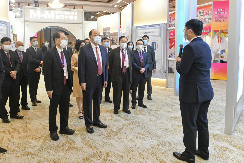 行政長官首先參觀本澳中學及大學科研及設計產品展示,了解學生們參與的科技創新和科研成果。其後,行政長官參觀了澳門工業綜合館、橫琴粵澳深度合作區資訊區、「9+2」大灣區資訊區,他期望居民能透過展覽進一步了解深合區和大灣區的發展機遇,更好融入國家發展大局。最後,行政長官到「澳門製造」的展位了解本地食品製作與成衣製造的情況。