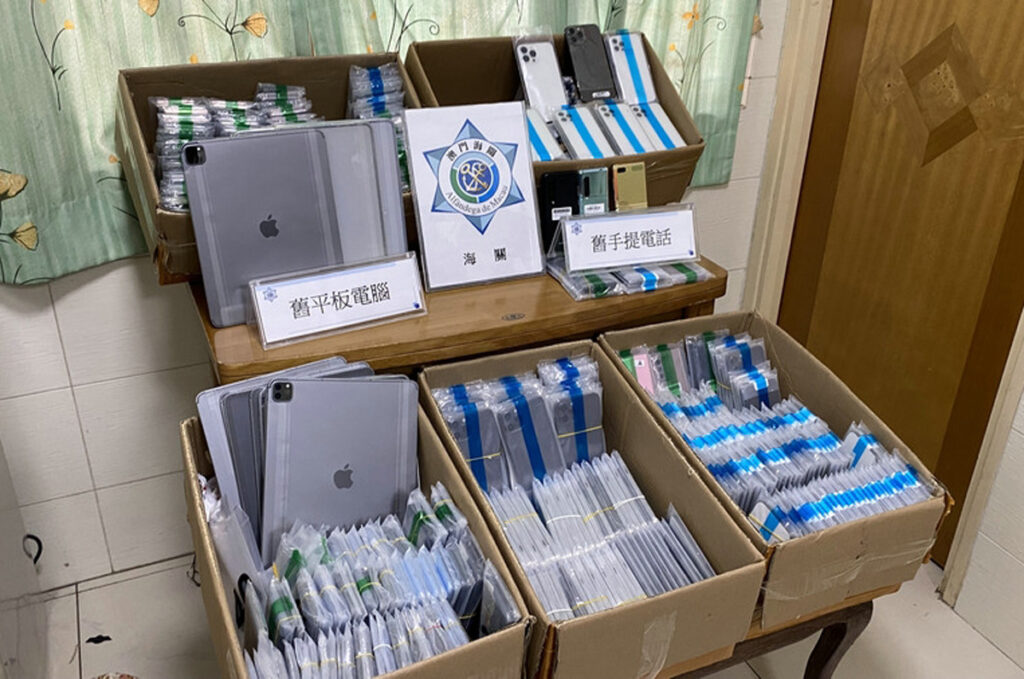 【本報訊】海關上月查獲彩虹苑第二座兩個住宅單位被利用從事水客活動,起出大量美妝產品及花膠等貨物。後續調查期間再鎖定同一大廈的二樓某單位,並於今日採取行動,共拘捕四名水客及兩名負責人,起出450部舊手提電話及舊平板電腦,估值約148萬元。相信散貨點運作超過一個月。