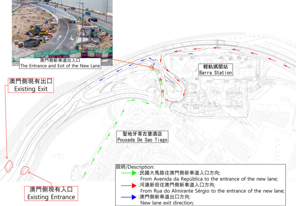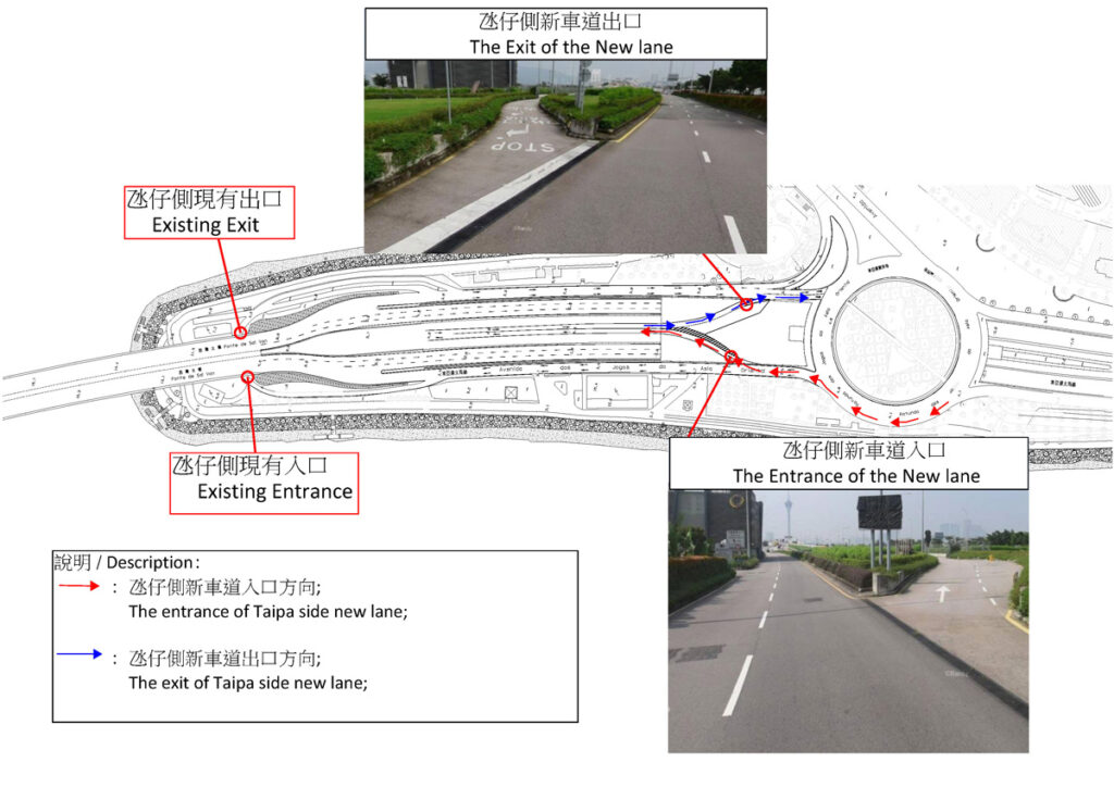 【本報訊】為配合輕軌氹仔線延伸至媽閣站的工程,現有西灣大橋下層緊急行車通道(包括澳門側及氹仔側)四個出入口將於短期內停用,以便進行後續施工。至於新的出入口將於2022年10月23日正式啟用,以便在八號風球等惡劣天氣情況下開放使用。