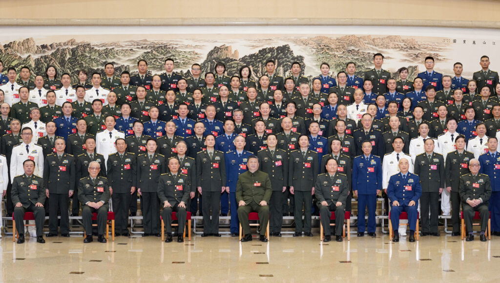 會議召開前,習近平親切接見出席黨的二十大解放軍和武警部隊全體代表、特邀代表、列席人員,同大家合影留念。
