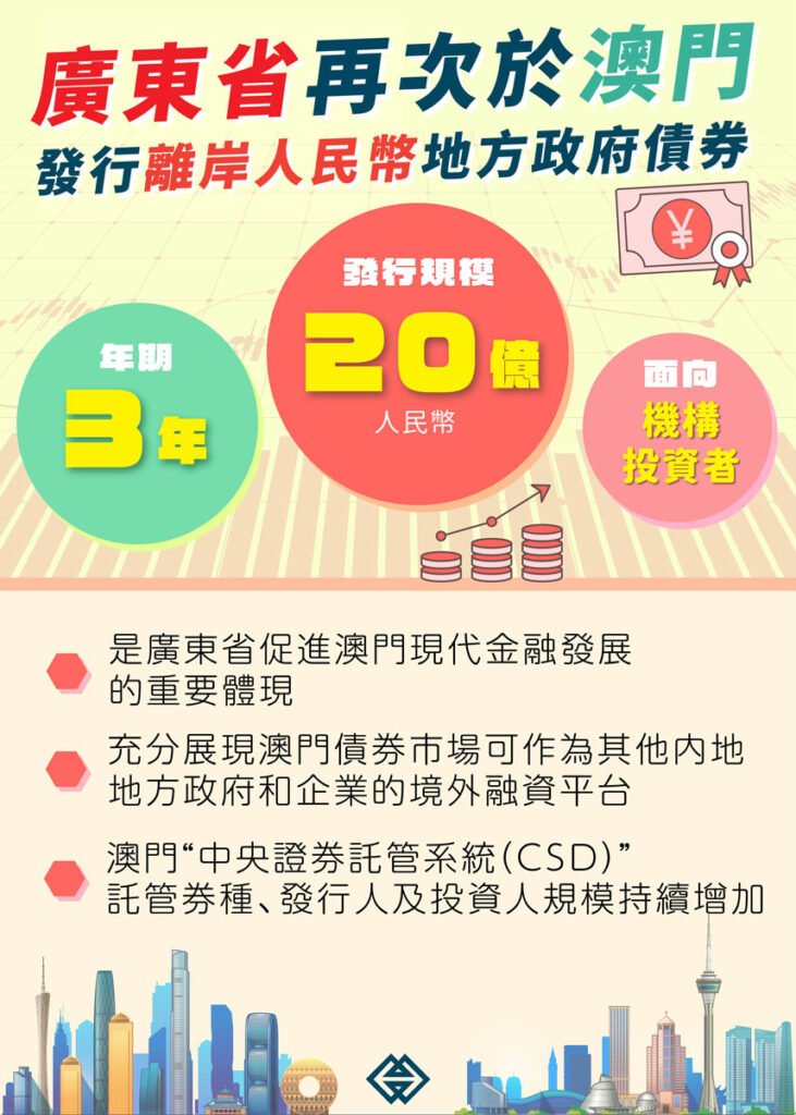 廣東省今於澳門發行20億離岸人民幣地方政府債券