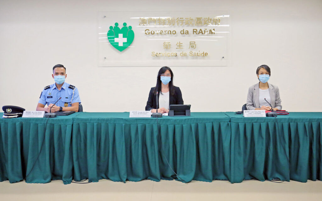 新型冠狀病毒感染應變協調中心11月4日舉行記者會,衛生局疾病預防及控制中心傳染病防控處梁亦好處長、治安警察局行動及通訊處馬超雄處長、旅遊局公共關係處藍同好處長分別介紹了本澳的整體防疫情況。