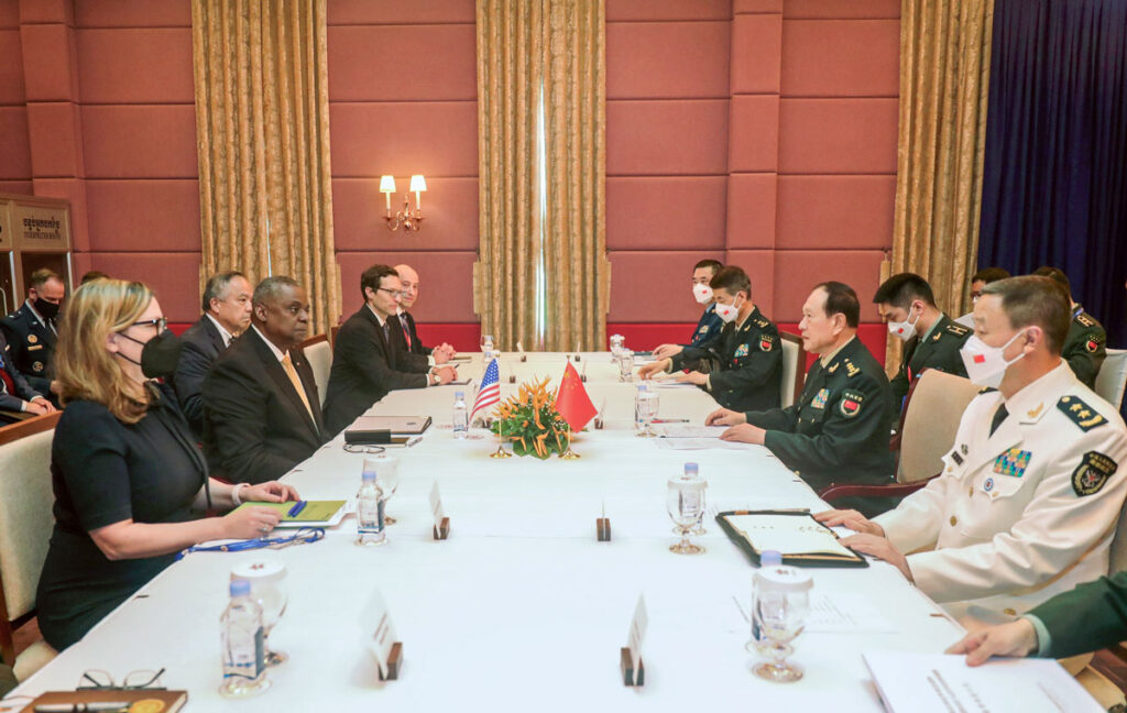 【本報綜合】22日,正在柬埔寨出席第九屆東盟防長擴大會議的中國國務委員兼國防部長魏鳳和應約與美國國防部長奧斯汀舉行了會談。這是中美元首巴厘島會晤後,兩國防長的首次面對面交流。