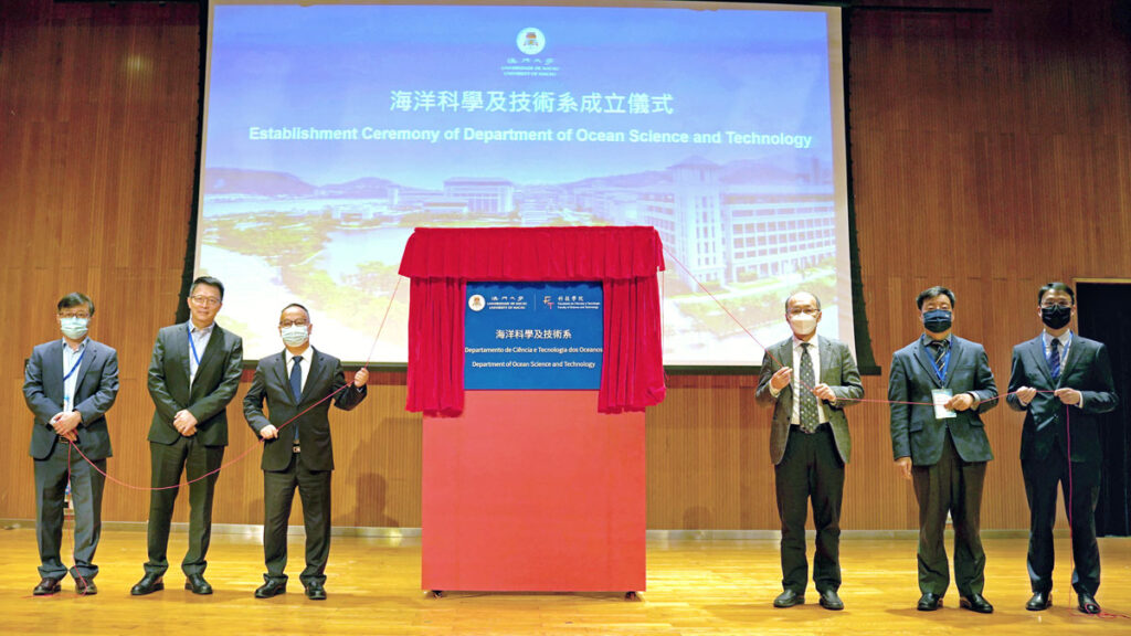 儀式上,科技部中國21世紀議程管理中心主任黃晶、澳大校長宋永華、中國科學院院士陳大可、科技學院院長須成忠、港澳海洋研究中心主任甘劍平及區域海洋研究中心代主任徐杰共同為海洋科學及技術系揭牌,並有眾多師生及社會業界人士出席見證。