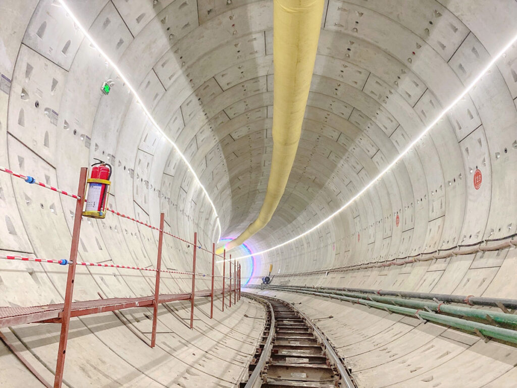 外徑7.7米全新製造的盾構機自今年7月25日在橫琴側始發,經歷124天連續鑽掘逾900米,期間穿越蓮花大橋匝道橋、十字門水道等重要設施,克服處於厚達9至22米不等的淤泥層、粉質黏土等軟弱地層的複雜環境,在澳門側海濱圓形地貫通出洞,較原計劃的貫通日期提前53天。