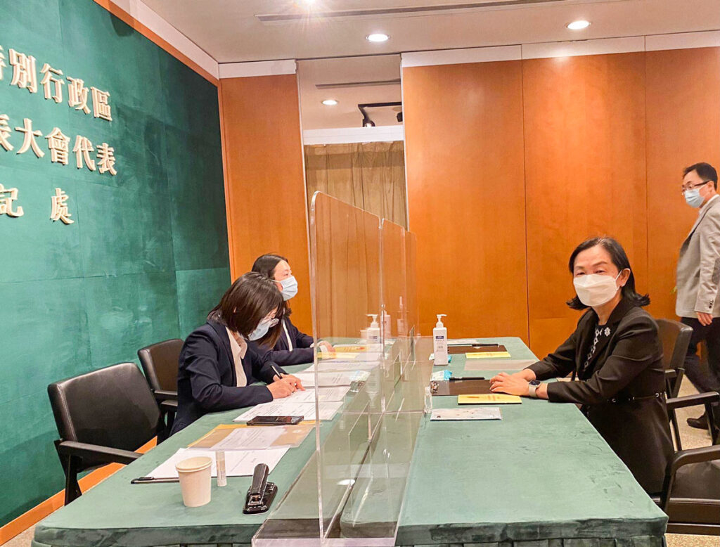 昨天上午另一名有意參選的女子到場交表,她只願意透露姓李,表示仍在爭取選委支持。