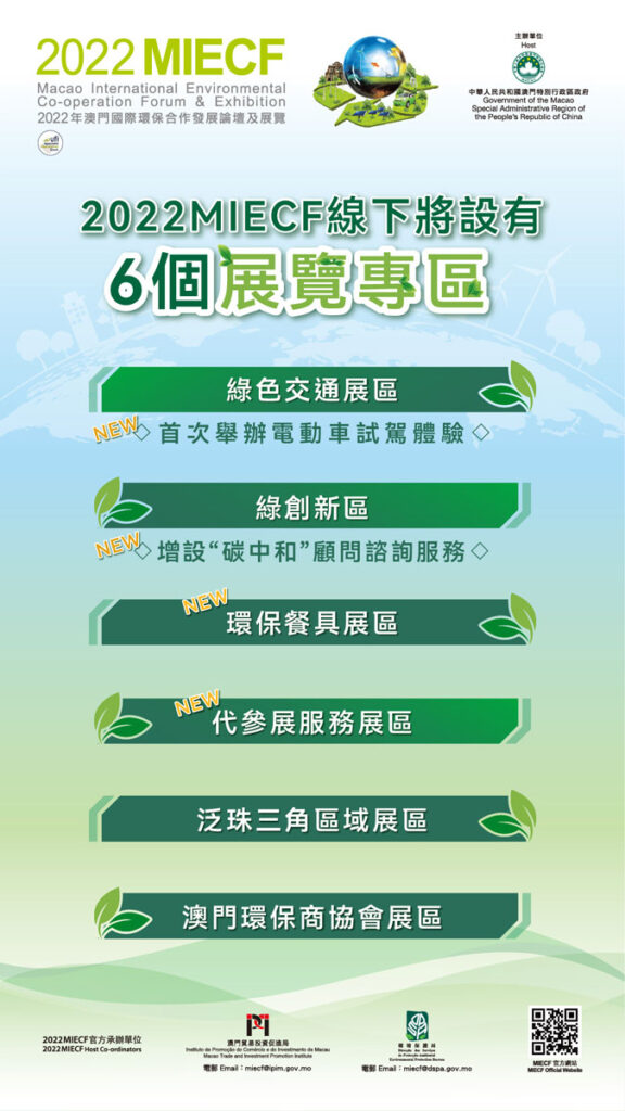 由澳門特別行政區政府主辦2022MIECF,將於12月9至11日假澳門威尼斯人金光會展舉行,主題為「匯力綠色發展邁進雙碳目標」。