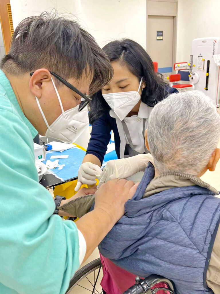 【本報訊】鑑於近期本澳社區感染風險有增加的趨勢,而現時本澳80歲以上長者的疫苗接種率仍然偏低,為保障院舍長者的健康與安全,社會工作局協同衛生局於12月7日前往明愛恩暉長者綜合服務中心,為近60名住院長者提供新冠疫苗外展接種服務,亦有約30名的該院長者將在稍後時間接種疫苗。