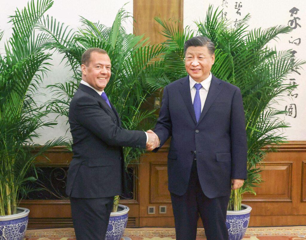 習近平請梅德韋傑夫轉達對普京總統的親切問候和良好祝願,指出中共二十大明確了全面建成社會主義現代化強國、以中國式現代化全面推進中華民族偉大復興的中心任務。我們有充足底氣、充分信心走好中國式現代化之路,也為世界和平與繁榮提供更多機遇。中國共產黨和統一俄羅斯黨長期開展機制化交往,成為鞏固中俄政治互信、推進兩國互利合作、展現兩國戰略協作的獨特管道和平臺,為新時代中俄關係行穩致遠提供了有力支撐。當前,中俄執政黨交往邁入“第三個10年”。希望兩黨繼續圍繞治國理政經驗、促進發展戰略對接、推動政黨國際多邊合作等深入交流,就執政黨建設互學互鑒,為深化中俄全面戰略協作貢獻智慧和力量。