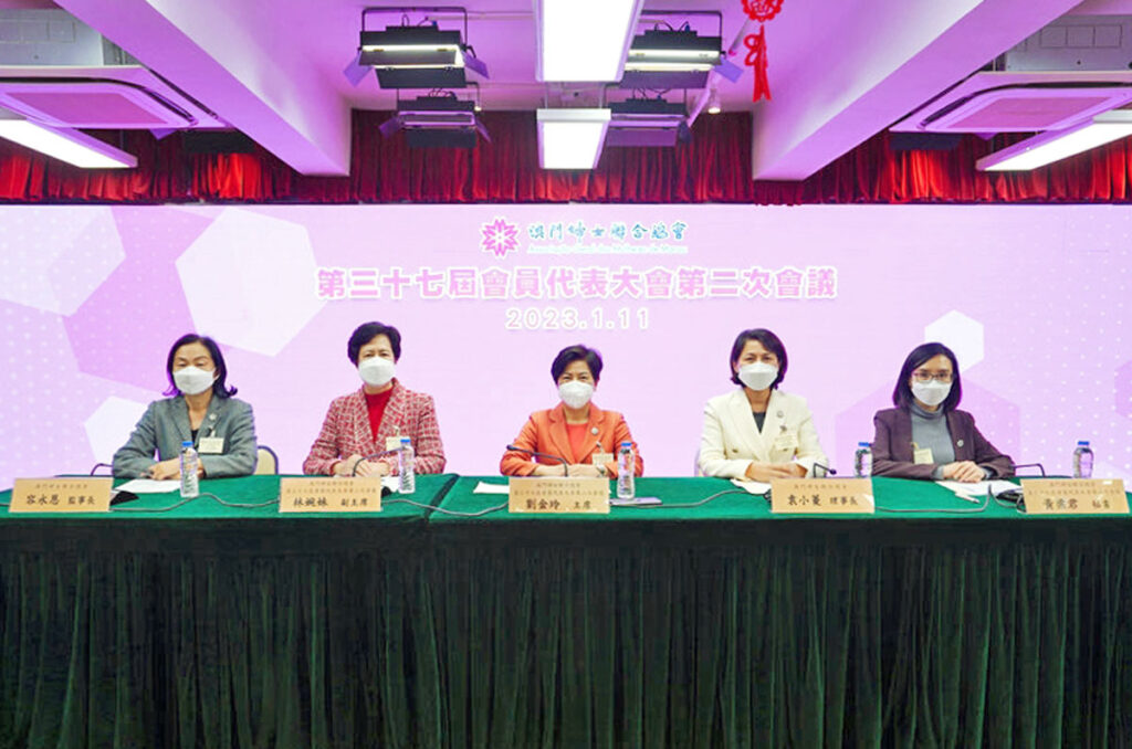會議於10日傍晚六時半在婦聯大廈二樓禮堂舉行,近三百名會員代表出席。會議由會員代表大會主席、會長劉金玲主持,理事長袁小菱作二○二二年工作報告,大會副主席、副會長林婉妹作財務報告,監事長容永恩作監事會工作意見,副秘書長黃梁君任大會秘書,各項報告均獲會員代表一致通過。