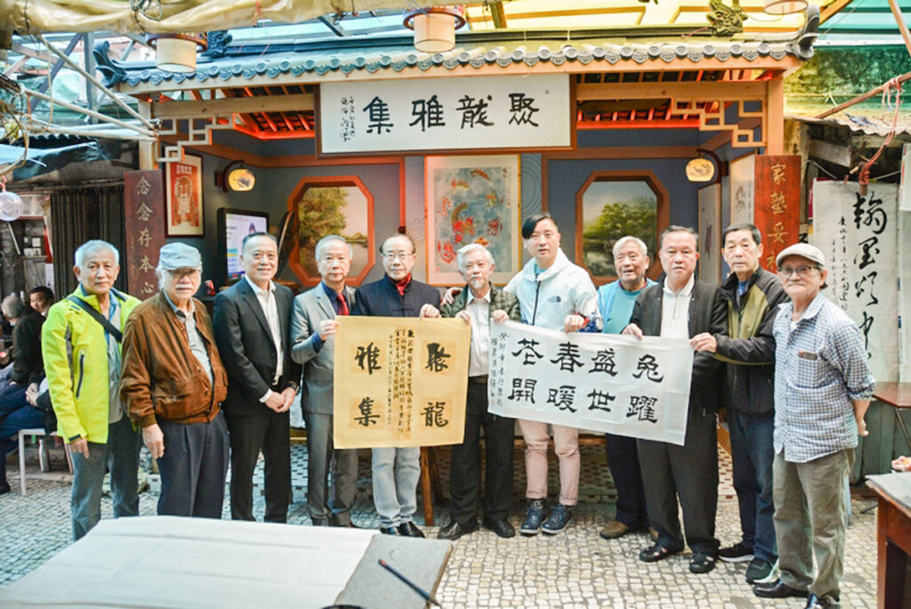 【本報訊】中區南區工商聯會與歷史城區發展促進會、草六坊會、果六坊會、澳門書法院、澳門文化藝術學會於昨日下午三時在爛鬼樓聚龍雅集舉行團拜聯歡,眾成員即席揮毫,同賀元宵。