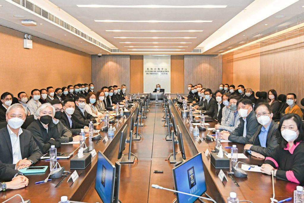 會議期間,民防架構各部門代表報告過去一年的民防工作情況,提出2023年的工作計劃,並共同就「水晶魚2023」民防颱風演習的內容作討論。
