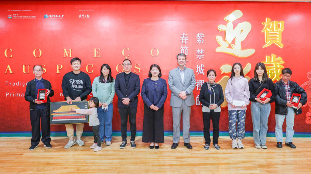 【本報訊】文化局轄下澳門藝術博物館與故宮博物院合辦之「賀歲迎祥──紫禁城裡的春節文化」展已於周日(3月5日)圓滿結束,廣受觀眾好評。配合展覽推出的網上遊戲大獎賞亦於當日舉行頒獎儀式,由文化局代局長張麗珊、《澳門日報》助理總編輯鄭國偉、雅辰酒店集團澳門區營運副總裁兼澳門雅辰酒店總經理溫誠睿(Rutger Verschuren)向得獎者頒發獎品。
