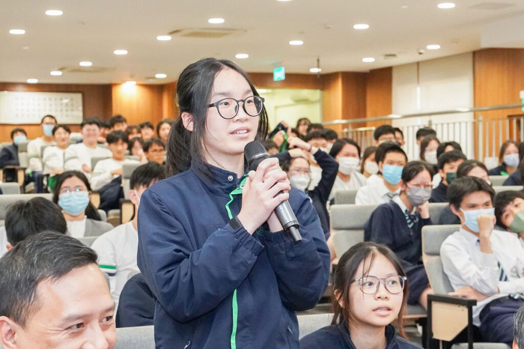 講座上,海關知識產權廳廳長李思雅透過短片及執法個案,介紹海關在打擊侵權行為方面的工作及成果,以及海關打擊違法攜帶物品出入境的相關工作;經濟及科技發展局知識產權廳廳長鄭曉敏就著作權和商標作詳細講解。講座並設有問答環節,學生踴躍回答,氣氛熱烈。