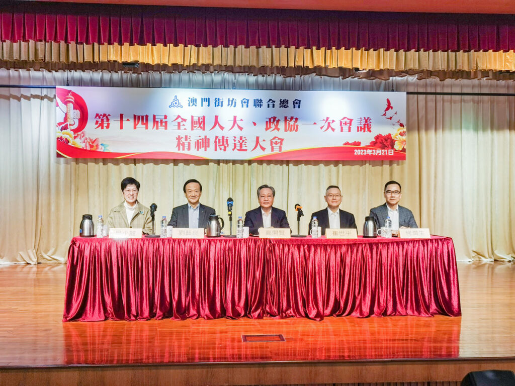 【本報訊】澳門街坊總會昨晚假坊眾學校中學部禮堂舉辦全國「兩會」精神傳達會,由澳區全國人大常委高開賢,全國人大代表劉藝良、崔世平、吳小麗,全國政協常委何潤生主講,向逾400多名居民分享「兩會」體會和報告內容,共同學習領會「兩會」精神。