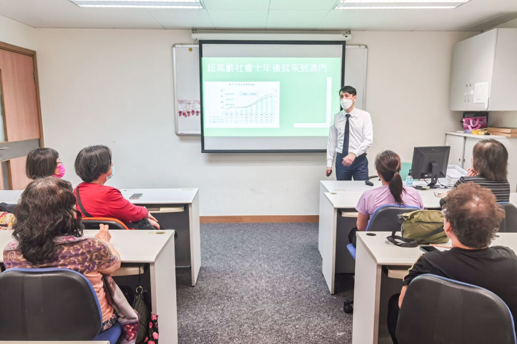 最後,講師介紹了澳門特區為長者提供的社區資源和服務中心,希望參加者能透過對心態轉變的認識和對社區資源的了解,鼓勵長者建立人際關係網和興趣的發展,幫助長者以正面的心態面對未來,讓退休生活變得自由和豐盛。