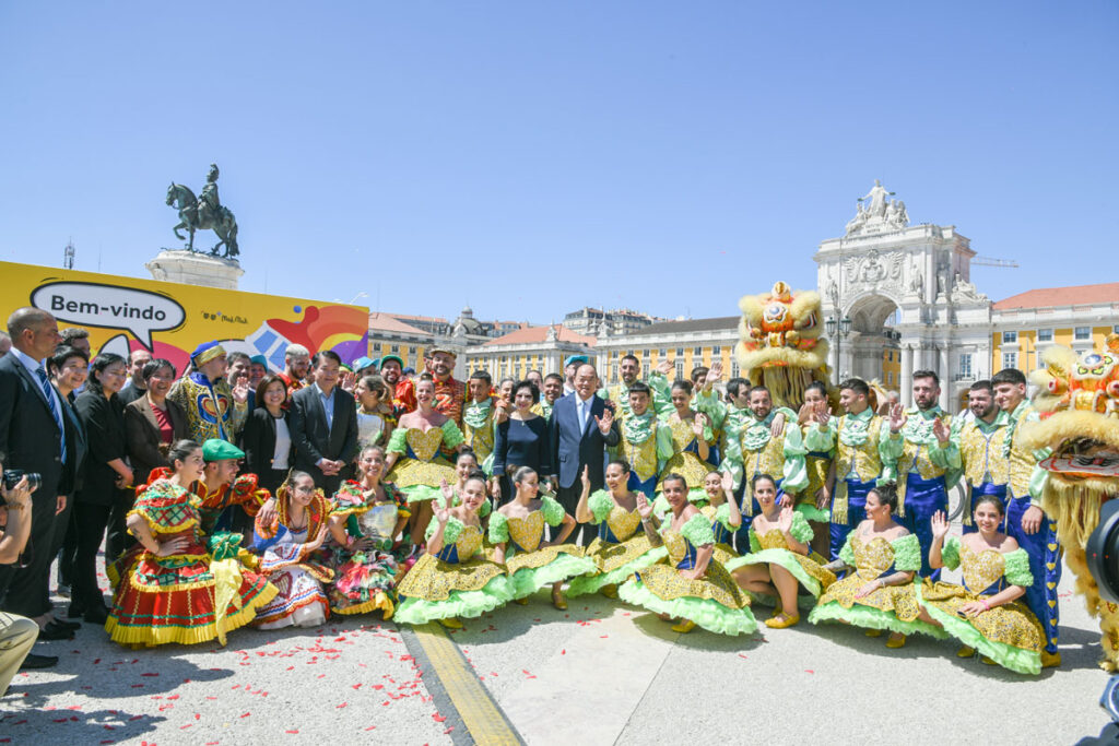 行政長官賀一誠與“感受澳門樂無限—里斯本澳門推廣活動“開幕儀式的表演者合影