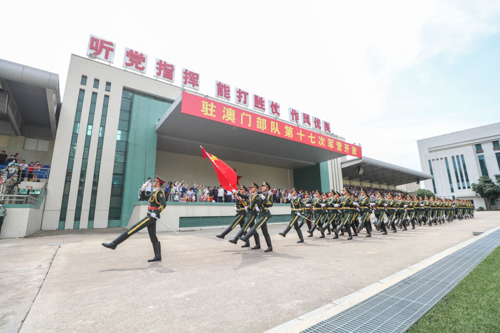 上午10時,駐澳部隊氹仔營區,伴隨著慷慨激昂的國歌,五星紅旗冉冉升起。