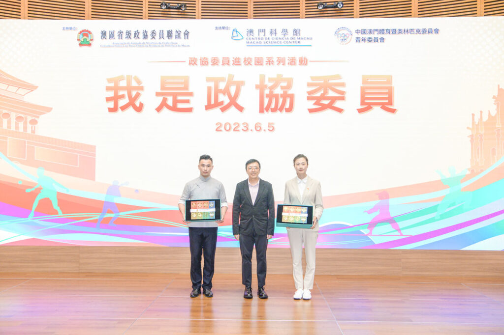 【本報訊】澳區省級政協委員聯誼會主辦的「政協委員進校園」系列活動之「我是政協委員」,昨日下午於澳門科學館會議廳舉行,澳區政協委員、學校師生近四百人士出席。黑龍江省政協委員、乒乓球奧運冠軍丁寧及重慶市政協委員、世界武術冠軍賈瑞應邀主講,與學生分享個人的成長故事、奮鬥歷程以及作為政協委員的責任與擔當。
