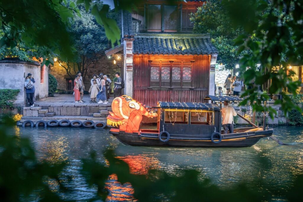 今年烏鎮景區推出“龍舟花燈船”新體驗