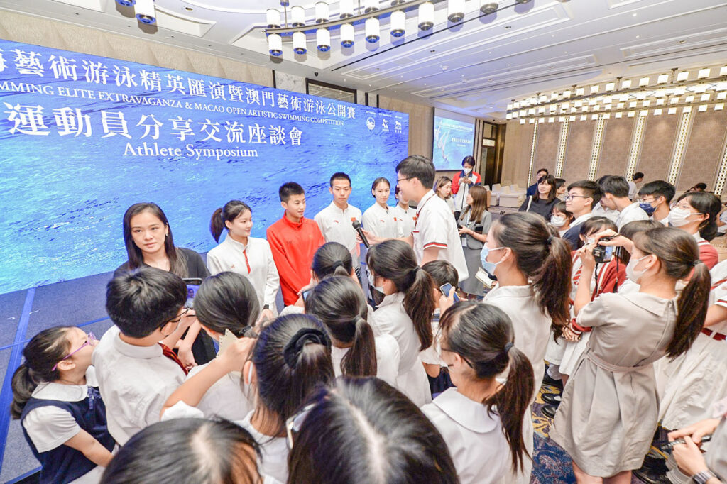 為促進內地與本澳青年及運動員的分享交流,美高梅延伸舉辦了「分享交流座談會」,一眾星級國家花泳運動員受邀分享各自的運動生涯;會後,美高梅更安排了學生記者採訪國家花泳運動員,讓「小記者」們獲得寶貴的實戰新聞採訪經驗,同時加深對國家級運動員的了解。
