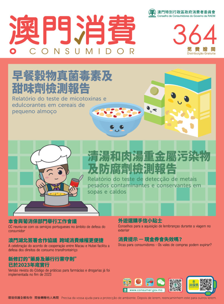 【本報訊】第364期《澳門消費》刊登20款早餐穀物,以及10款預包裝清湯和肉湯的檢測報告,全部樣本受檢項目符合本澳相關法規要求。