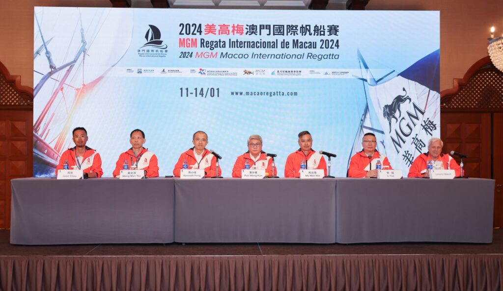 主辦單位昨日於澳門雅辰酒店舉行新聞發佈會介紹賽事詳情,出席嘉賓包括體育局局長潘永權、美高梅中國控股有限公司總裁及執行董事馮小峰、北斗星航海賽事管理董事長馬文偉、海事及水務局海事活動廳廳長黃文濤、澳門風帆船總會副理事長李鉞、賽事競賽官周亮、賽事仲裁團主席Lorenz Walch、和體育委員會委員等。