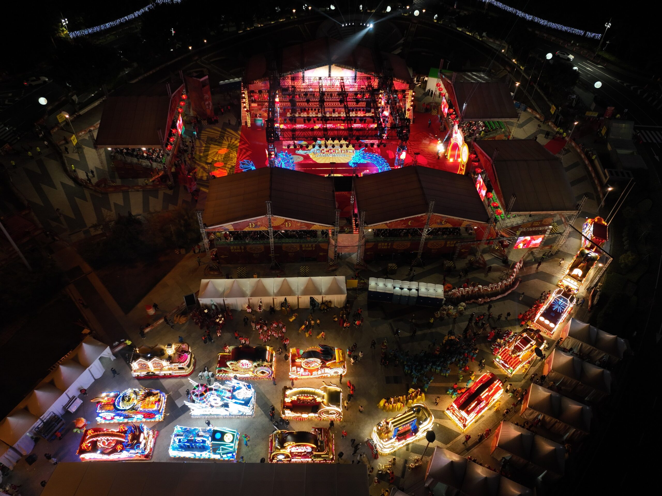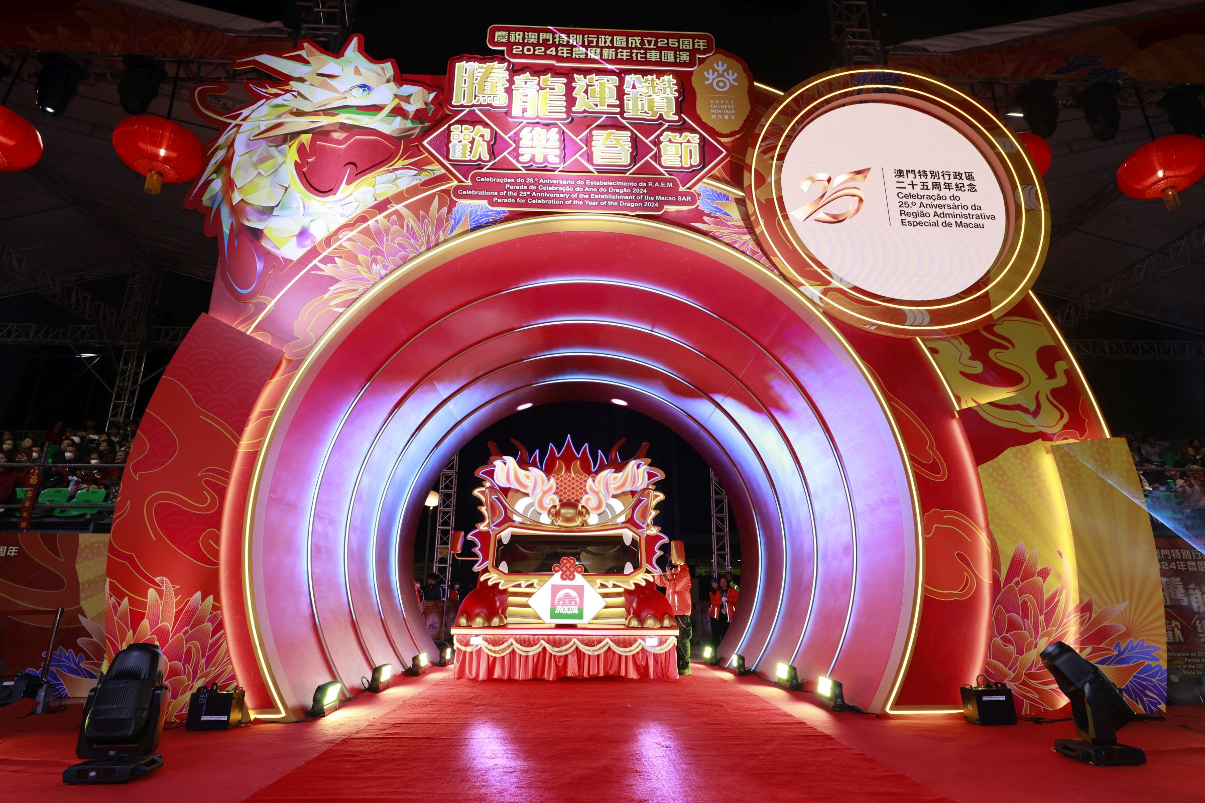 陣容鼎盛的花車隊將於2月18日至25日在塔石廣場展出,亮燈時間為下午6時至晚上10時,供居民及旅客近距離觀賞,拍照留念。