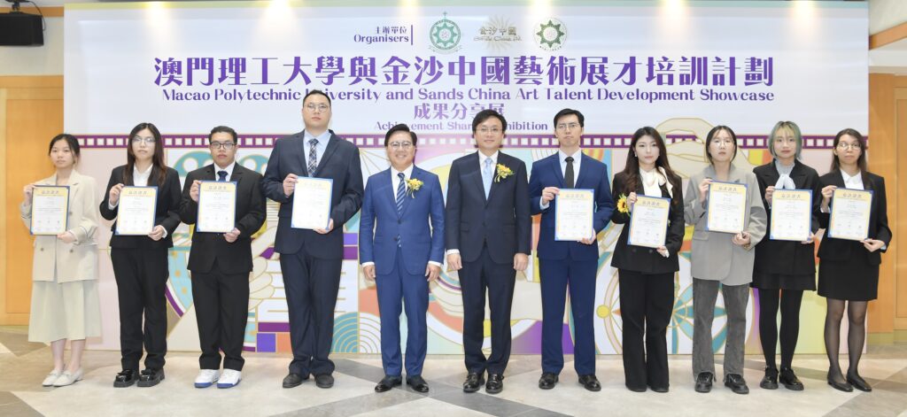 【本報訊】為配合澳門青年政策、助力澳門「1+4」經濟適度多元發展,澳門理工大學、金沙中國及澳門理工大學校友會聯合舉辦的「藝術展才培訓計劃」在澳門理工大學舉行成果分享展,展示學生創作成果,反應熱烈。澳門理工大學校長嚴肇基、金沙中國有限公司行政副主席王英偉、澳門理工大學校友會理事長黃宇棋等出席活動並向參與計劃的學生頒發證書。