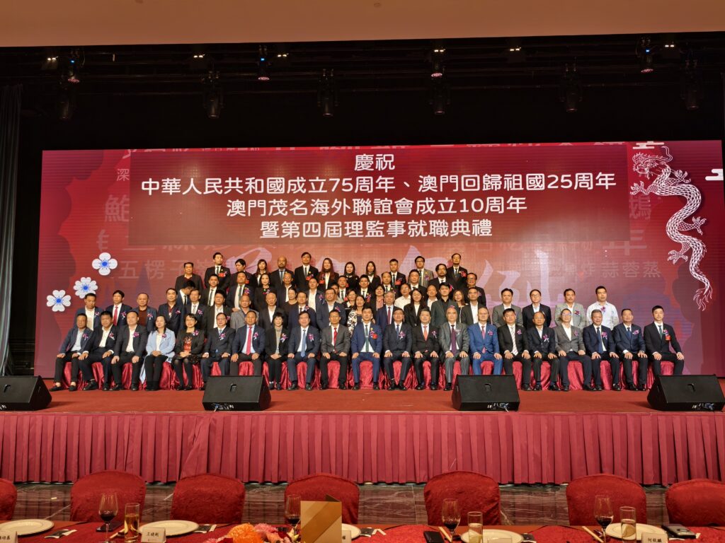 【本報訊】澳門茂名海外聯誼會3月23日假漁人碼頭宴會廳舉行慶祝中華人民共和國成立75週年、澳門回歸祖國25週年、澳門茂名海外聯誼會成立10週年暨第4屆理監事就職典禮,家鄉領導、各界嘉賓到賀者眾。會長林偉權表示,澳門和茂名結合現有的競爭力,加上創新、粵港澳大灣區合作等優勢,構建新質生產力,令澳門各行各業在融入大灣區建設中,產生新的增長點。