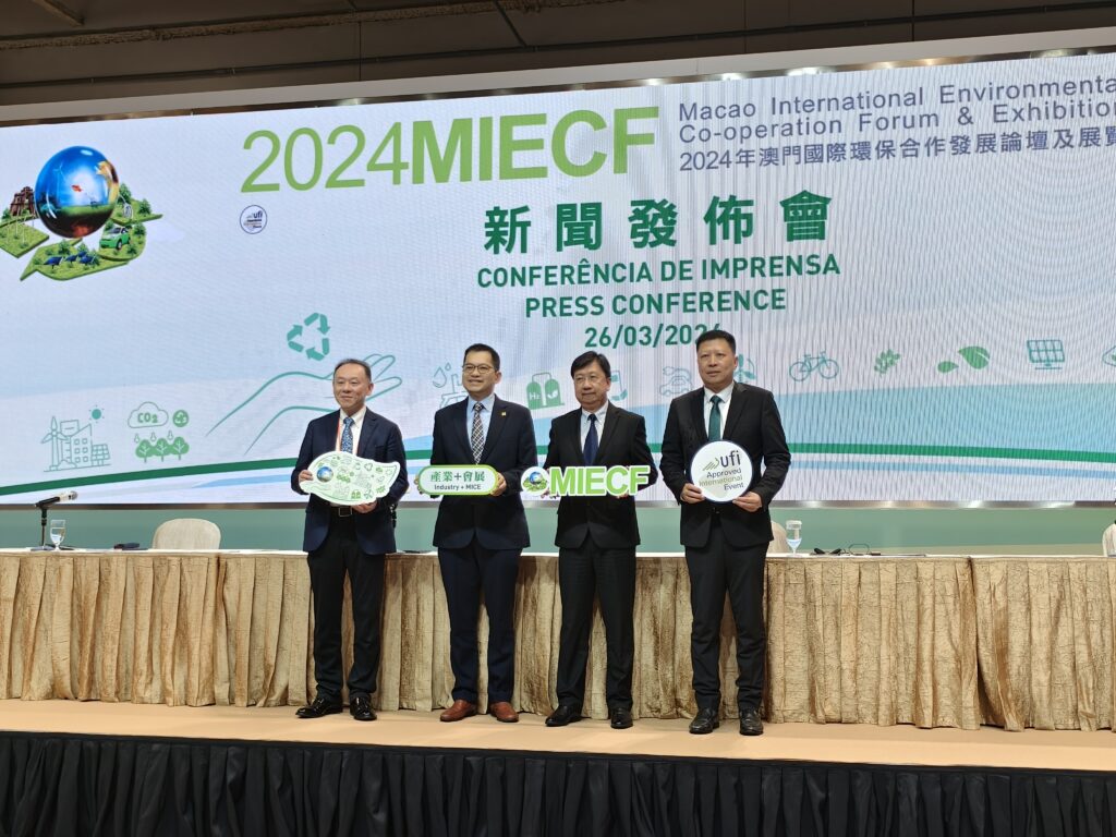 大會昨日舉行2024MIECF新聞發佈會,由官方承辦單位及相關參與機構介紹展會內容。貿促局主席余雨生介紹今屆展覽三方面升級,第一,今屆綠色平台將迎來規模升級,展覽面積、參展商與展位增加。第二,MIECF國際化程度顯著提升,國際展商數量明顯增至62家,同比大幅增長55%。第三,內容實現全面升級。展區方面,增設「綠色智慧產業展區」、特設「粵港澳大灣區環保產業展區」;展品方面,有澳門企業的環保產品將在展覽期間全球首發,同場亦有不少外地企業的綠色產品將與澳門「1+4」重點產業有機對接。今年的澳琴聯動環保對接專場進一步擴展至公共機構,並增加至33個參與單位,全力推進澳琴融合發展。2024MIECF將繼續發揮區域內綠色商貿平台功能,助力澳琴、大灣區、以至葡語國家等的環保業界,發掘市場上的綠色機遇。