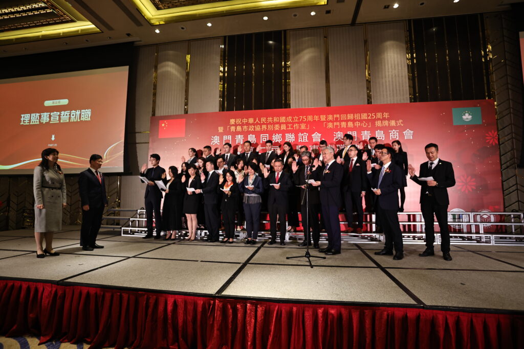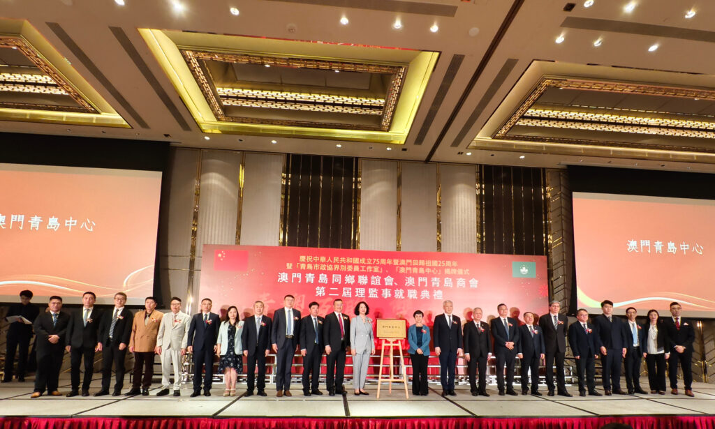 其後,同場進行「青島市政協界別委員工作室」、“澳門青島中心”揭牌儀式,場面熱烈。