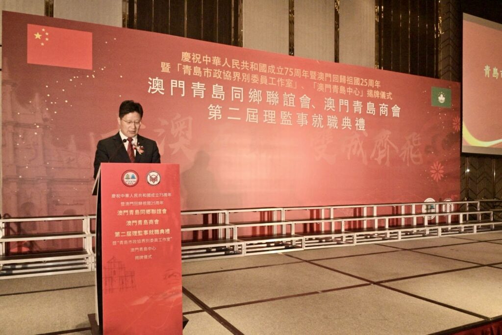 就職典禮及會員大會於22日晚上六時三十分在新濠影滙宴會廳舉行,青島市政協主席孟慶斌、澳門中聯辦協調部部長仇昱、澳門旅遊局局長文綺華、澳門基金會行政委員會主席吳志良、全國政協委員陳季敏、澳門立法會議員龐川、澳門立法會議員張健中、澳門立法會議員羅彩燕、澳門供應商聯合會會長葉紹文、澳門貿易投資促進局對外推廣籌畫處總經理馮建樹、青島市政協副主席李蘇滿、山東省港口集團有限公司總經理李奉利、青島市委統戰部分管日常工作的副部長一級巡視員,青島海外聯誼會常務副會長楊長軍 、青島市政協港澳台僑和外事辦主任孫佩琳等出席。