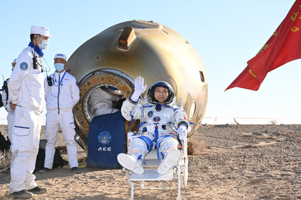 當天16時56分,北京航天飛行控制中心通過地面測控站發出返回指令,神舟十七號載人飛船軌道艙與返回艙成功分離。之後,飛船返回制動發動機點火,推進艙與返回艙分離,返回艙成功著陸,擔負搜救回收任務的搜救分隊及時發現目標並抵達著陸現場。返回艙艙門打開後,醫監醫保人員確認航天員身體健康。