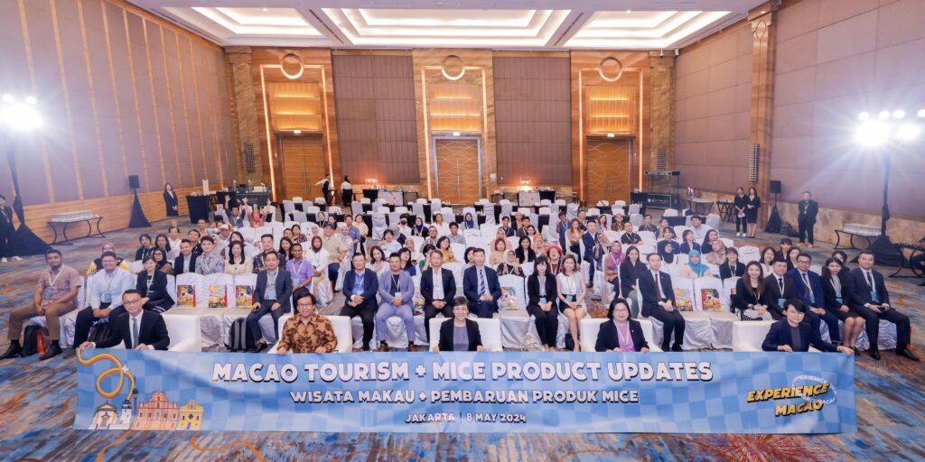 澳門「旅遊+會展」最新產品資訊推介會及洽談會8日在雅加達鉑爾曼中央公園酒店(Pullman Jakarta Central Park)舉行。澳門旅遊局局長文綺華、ASTINDO印尼旅行社協會全國理事會財務總監Chris Subianto、澳門貿易投資促進局行政管理委員會執行委員黃伊琳、橫琴粵澳深度合作區經濟發展局文旅會展商貿處處長林衍傑等嘉賓,聯同澳門六大綜合度假休閒企業代表、澳門和印尼業界等約100人出席活動。