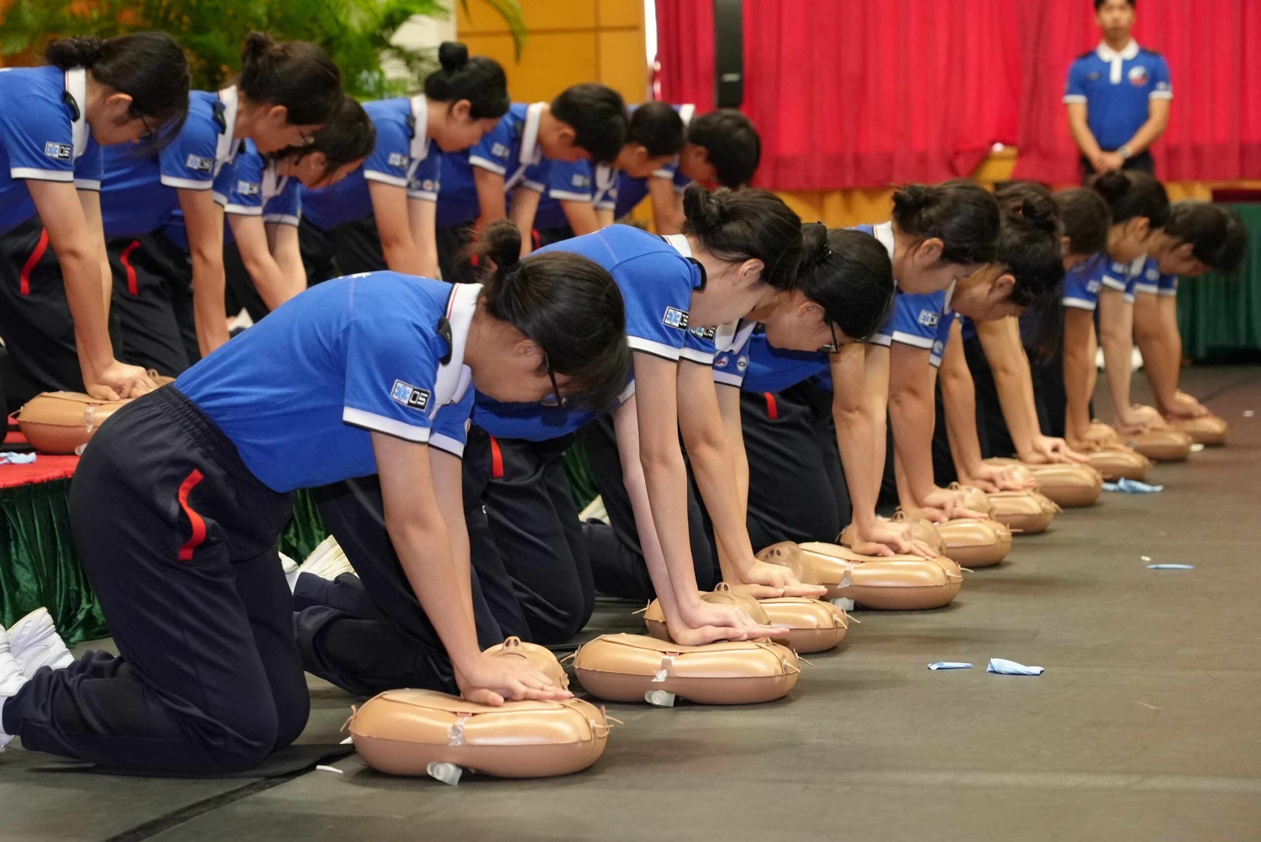 接著舉行第五屆「救護小先鋒」結業儀式,在為期大約一年的課程中,學習內容包括:救護學原則、心肺復甦法、自動體外心臟去顫器(AED)認識、傷口處理及包紮、繩索及繩結、滅火設備操作實習、基本軍警禮儀、消防安全體驗及交流活動等。結業學員代表發表感言,感謝消防局提供了多元的學習平臺,並表示能成為「救護小先鋒」感到驕傲和自豪。隨後,由消防局局長梁毓森向完成課程並通過考核的40名第五屆「救護小先鋒」學員頒發培訓證書,及後進行救護演練將過去一年裡所學到的救護技能及知識,以表演形式展現出來。接著進行第六屆「救護小先鋒」成立宣誓儀式,由保安司司長黃少澤進行監誓,並在出席嘉賓共同見證下,合共有45名的青少年正式成為第六屆「救護小先鋒」的一份子。消防局冀望他們能繼續傳承「救護小先鋒」的信念,共同為社區的消防安全注入力量和貢獻。