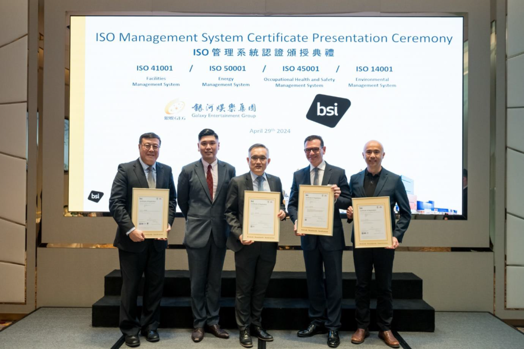 中華人民共和國澳門特別行政區(2024年5月13日)— 銀河娛樂集團(下稱「銀娛」)深明環境保護對可持續發展至關重要,多年來持續透過一系列不同舉措實施源頭減廢及節能減排,藉此推動環境保護及可持續發展。近日,銀娛在設施及環境管理方面,再度榮獲英國標準協會頒發多項ISO國際標準管理系統認證。此外,旗下酒店品牌澳門悅榕庄連續第5年榮獲EarthCheck金徽認證;而「銀河酒店™」及澳門大倉酒店亦連續多年獲頒銀徽認證,加上銀河國際會議中心於 2021 年獲頒全澳首個的EarthCheck可持續發展設計標準銀徽認證,令銀娛持續成為全澳門擁有最多EarthCheck認證獎項的綜合旅遊休閒企業,充份展示銀娛多管齊下的可持續發展工作行之有效,並得到不同的國際權威機構肯定。為進一步提升團隊成員的環保相關知識,銀娛早前於銀河國際會議中心舉辦「共享銀娛可持續發展之旅」活動,除了與團隊成員介紹近期的綠色工作成果及環保舉措外,亦邀請業界代表分享可持續發展及管理的現況及趨勢。