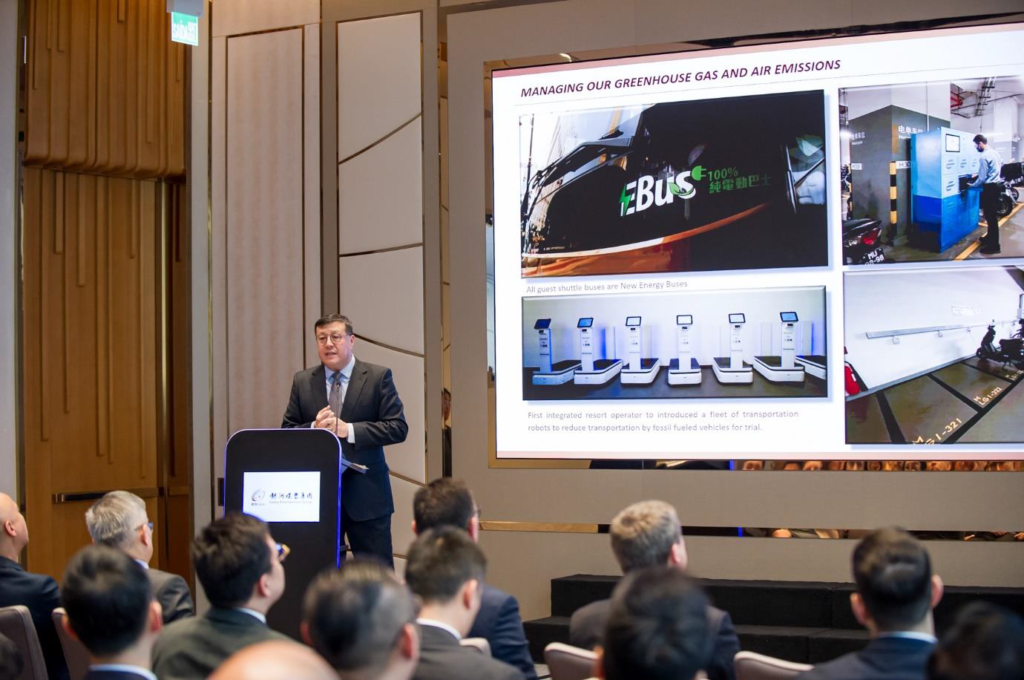 分享環節上,銀娛相關部門代表首先向一眾團隊成員分享銀娛最新實施的可持續及環保舉措,當中包括:持續改善及優化相關的設施系統;率先引入智能運輸機械人以提高運輸效率,減少能源消耗與碳排放;並於旗下「銀河酒店」、澳門悅榕庄、澳門大倉酒店、「澳門百老匯™」、澳門安達仕酒店及澳門銀河 萊佛士的酒店客房採用環保竹製用品以取代塑膠,以及把客房內的一次性沐浴產品更換為可填充或大容量容器等,成為首家大規模實施相關環保舉措的綜合旅遊休閒企業,致力每年取代超過1,800萬件的相關塑膠品,進一步履行減塑減廢的環保承諾。此外,銀娛亦邀請英國標準協會代表講解ISO國際標準管理系統認證對旅遊休閒企業的價值、益處及認證標準;同時,GREEN Hospitality代表亦分享大灣區以至全球酒店產業的可持續發展現況及未來趨勢,冀進一步深化團隊成員對綠色旅遊的了解。