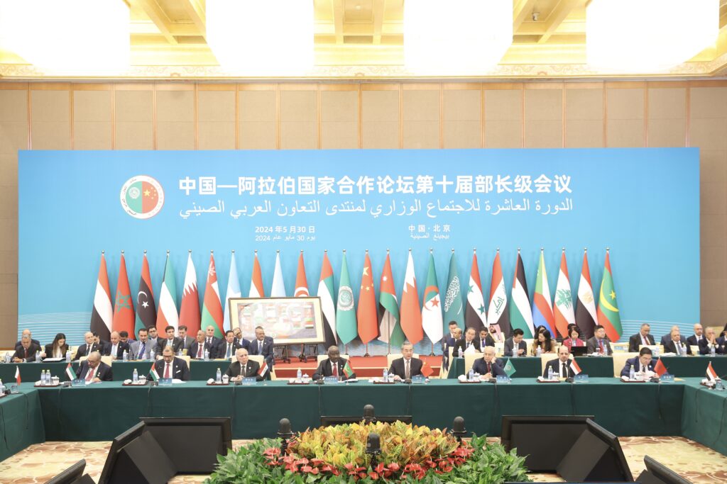 【中新社北京5月30日電】5月30日上午,中國國家主席習近平在北京釣魚台國賓館出席中阿合作論壇第十屆部長級會議開幕式併發表主旨講話。習近平宣佈,中方將於2026年在中國舉辦第二屆中阿峰會,中方願同阿方弘揚中阿友好精神,構建「五大合作格局」,推動中阿命運共同體建設跑出加速度。