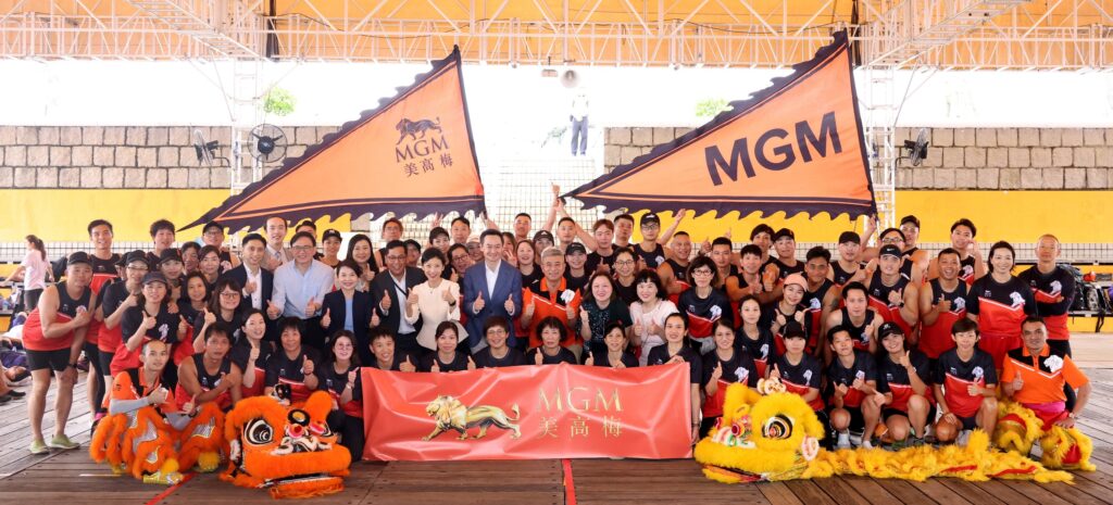於下水禮當日,美高梅中國一眾管理層到場進行傳統的拜神及切燒豬儀式,祈求賽事順利平安;亦有美高梅舞獅隊為一眾為龍舟健兒打氣助慶,祝願金獅龍舟隊以最佳狀態迎戰賽事。