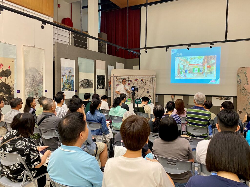 林翊捷主講「水村山郭—水神與祂們的聚落」,由人類賴以維生的「水」掀開序幕,雨水、井泉、江河和海洋,不論對航海或農業的民族皆影響深遠,在科技不發達的時代,人們對水虔誠祭拜,祈求風調雨順、國泰民安。澳門作為沿海城市,海洋文化深植其中,這個城市多元的宗教信仰中,有不少與水有關的神祇,有多座廟宇的主神屬於「水神」。講者以豐富的地圖和照片,暢談澳門的水神廟宇,探討其建成的時期、所在的位置與座向,以至供奉的神祇,這些細節一方面見證了昔日的海岸線,而不同水神的「神格」,亦反映了不同華人族群的特點。